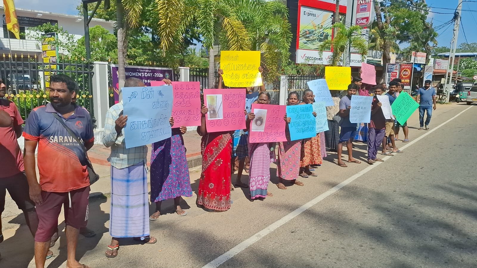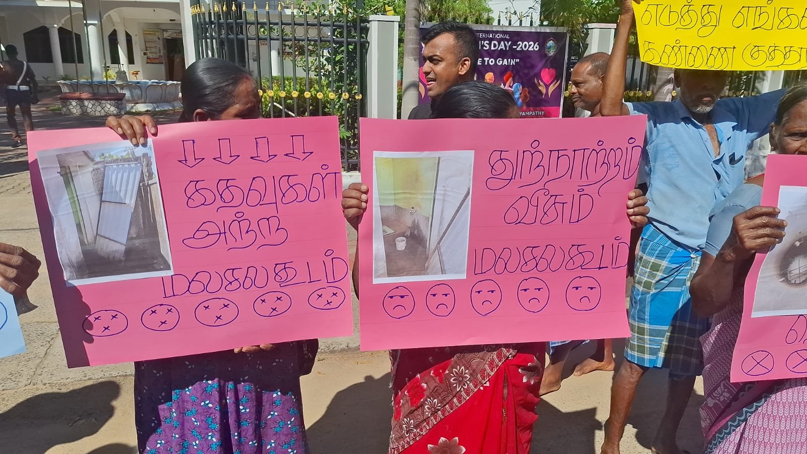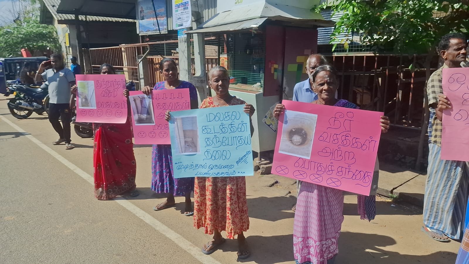பல்வேறு கஷ்டங்களை தாங்கள் எதிர்கொண்டு வருகிறோம் என பதாகைகள் ஏந்தியவாறு கோஷங்கள் எழுப்பி போராட்டத்தில் ஈடுபட்டனர்.