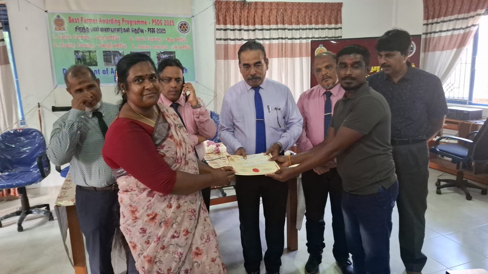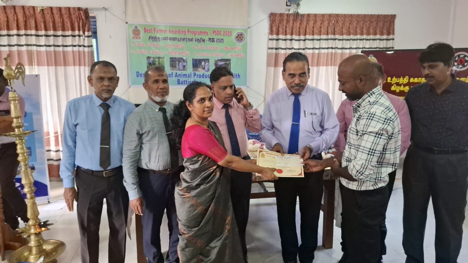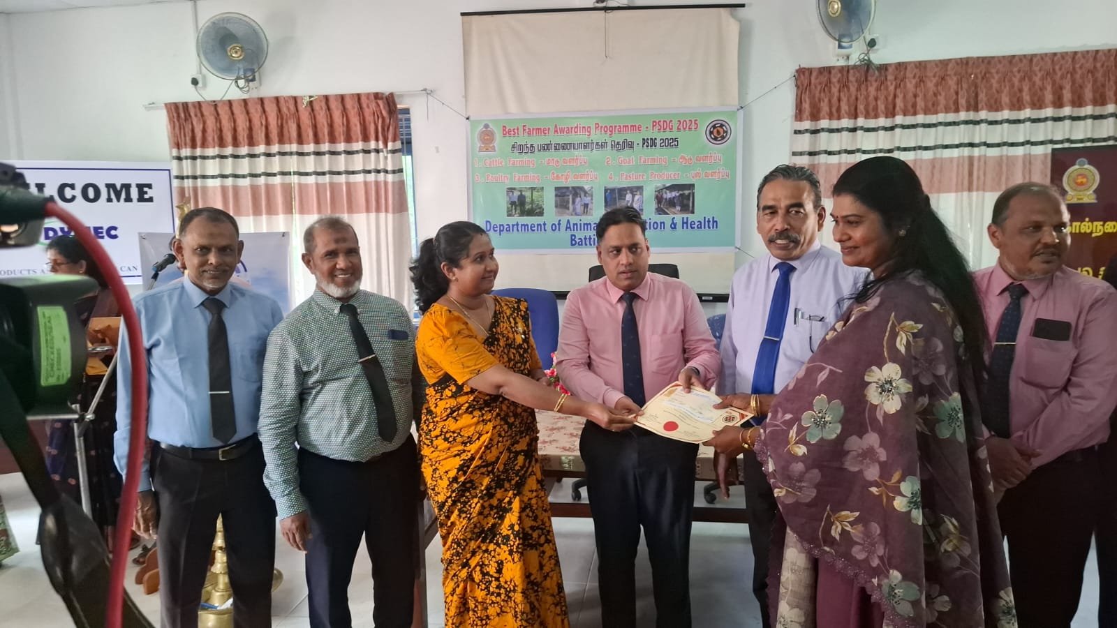 மட்டக்களப்பு மாவட்டத்தில் சிறந்த பண்ணையாளர்களுக்கான பணப்பரிசில்கள் பரிசில்கள் மற்றும் சான்றிதழ்கள் வழங்கும் வைபவம் கால்நடை அபிவிருத்தி சுகாதார திணைக்கள பிரதி பணிப்பாளர் டாக்டர் எம்.அப்துல் ஹாதி தலைமையில் நடைபெற்றது.மாவட்டத்திலிருந்து தெரிவு செய்யப்பட்ட 60 பண்ணையாளர்கள் பணப்பரிசில்களையும், சான்றிதழ்களையும் பெற்றுக்கொண்டனர்.