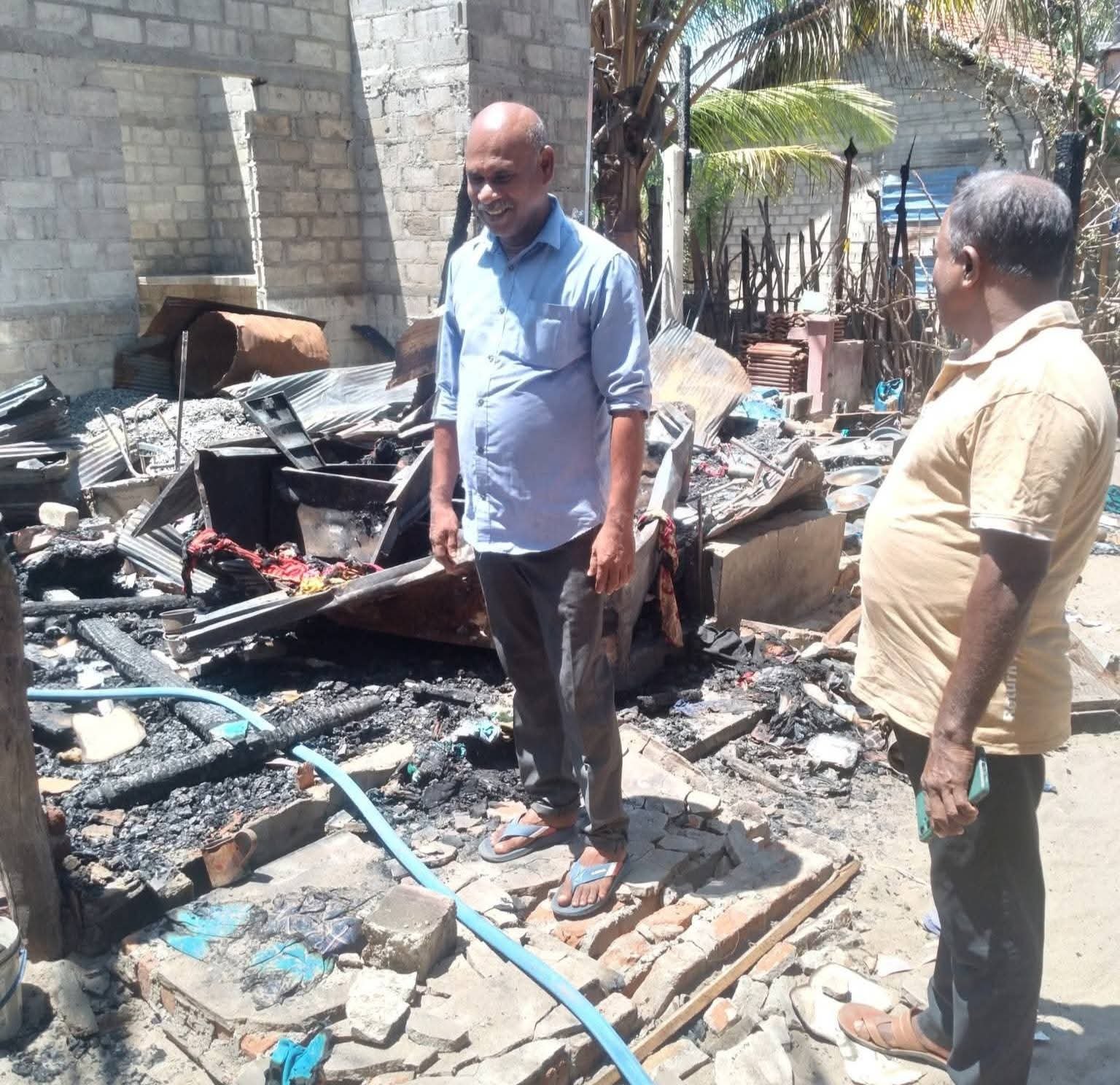 சம்பவத்தில் குடிசை வீடும் அதனுள் இருந்த வீட்டு உபகரணங்களும் முற்றாக எரிந்து சாம்பலாகியுள்ளன.