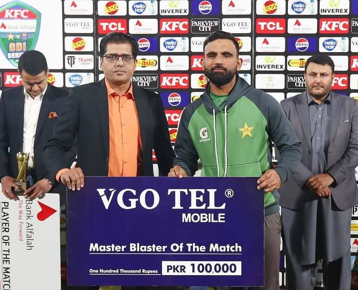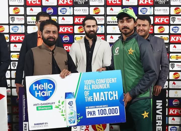 துடுப்பாட்டத்தில் பாகிஸ்தான் அணி சார்பில் மொஹமட் ரிஸ்வான் ஆட்டமிழக்காமல் அதிகபட்சமாக 61 ஓட்டங்களையும், ஃபகார் சமான் 55 ஓட்டங்களையும் ஹுசைன் தலத் ஆட்டமிழக்காமல் 42 ஓட்டங்களையும் பெற்றுக்கொடுத்தனர்.