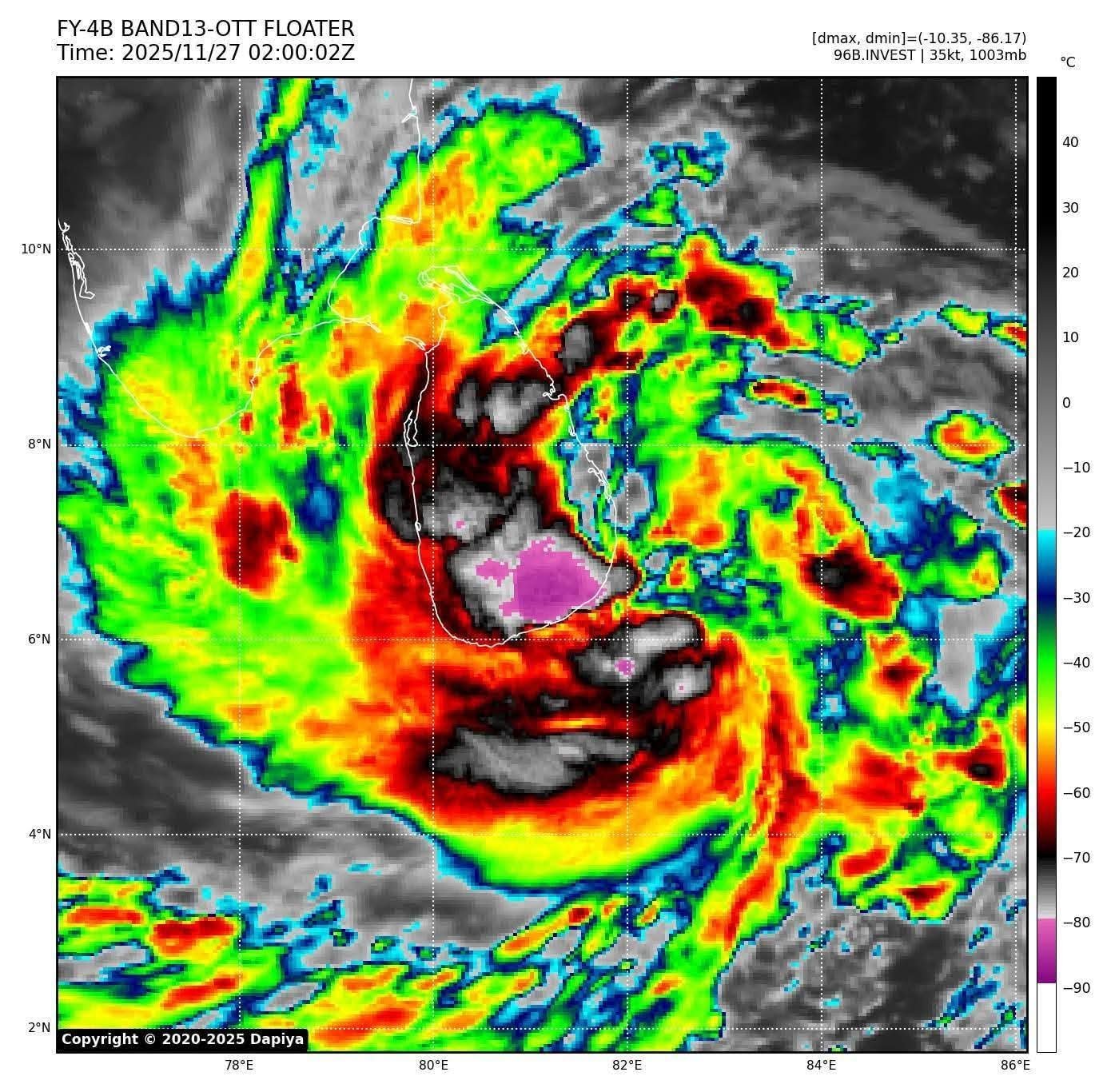 தொடர்ச்சியாக மிக கன மழையும் மிக வேகமான காற்று வீசுகையும் எதிர்வரும் 30.11.2025 வரை நிகழும் என எதிர்பார்க்கப்படுகிறது.
