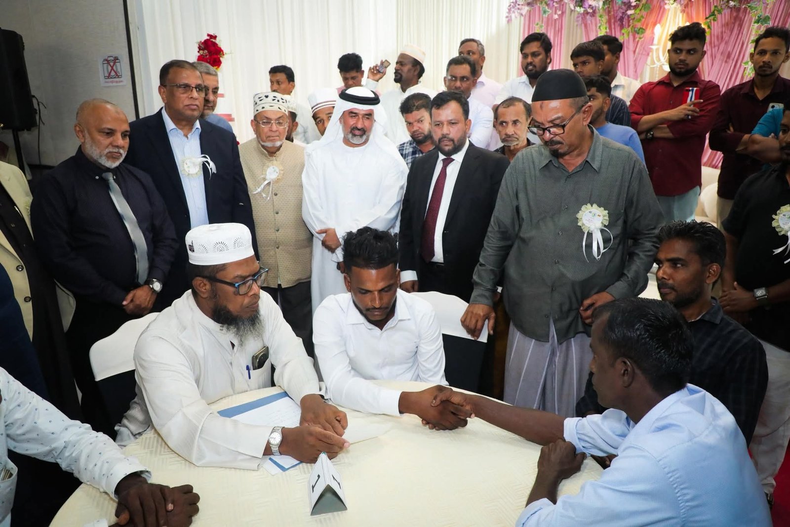இந்நிகழ்வில் 20 உலமாக்கள், திருமணப் பதிவாளர், தம்பதிகளின் குடும்பத்தினர் மற்றும் நண்பர்கள் என நூற்றுக்கணக்கானோர் கலந்துகொண்டனர்.
