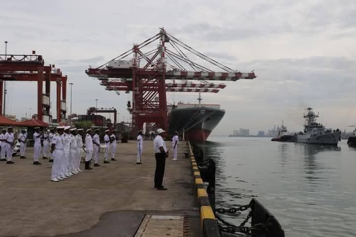 கொழும்பு துறைமுகத்தை வந்தடைந்த கப்பலை இலங்கை கடற்படையினர் சம்பிரதாயபூர்வமாக வரவேற்றனர்.