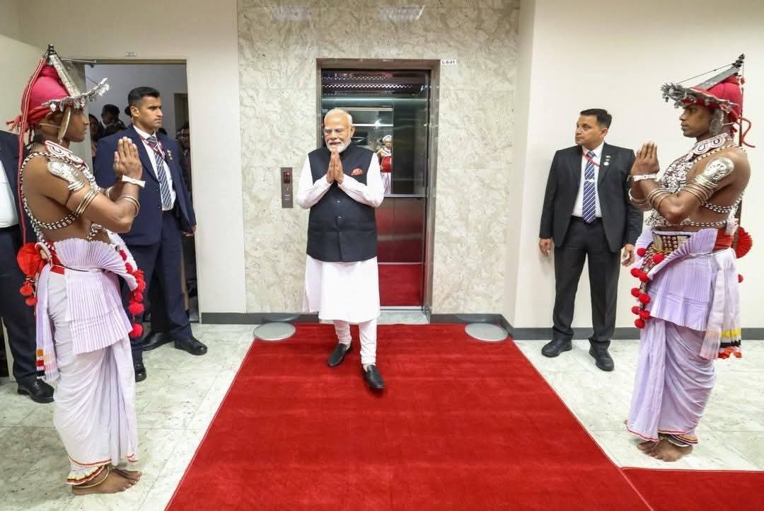 வெளிநாட்டு அலுவல்கள், வெளிநாட்டு வேலைவாய்ப்பு மற்றும் சுற்றுலாத்துறை அமைச்சர் விஜித ஹேரத், சுகாதாரம் மற்றும் ஊடக அமைச்சர் நலிந்த ஜயதிஸ்ஸ, மீன்பிடி, நீரியல் மற்றும் கடல் வள அமைச்சர் ராமலிங்கம் சந்திரஸேகர், மகளிர் மற்றும் சிறுவர் விவகார அமைச்சர் சரோஜா சாவித்திரி போல்ராஜ், விஞ்ஞானம் மற்றும் தொழில்நுட்ப அமைச்சர் கிரிஷாந்த அபேசேன மற்றும் பொருளாதார அபிவிருத்தி பிரதி அமைச்சர் அனில் ஜயந்த பெர்னாண்டோ ஆகியோரால், பிரதமர் ஸ்ரீ நரேந்திர மோடி மற்றும் இராஜதந்திரிகள் குழுவினருக்கு சிறப்பு வரவேற்பு அளிக்கப்பட்டது.