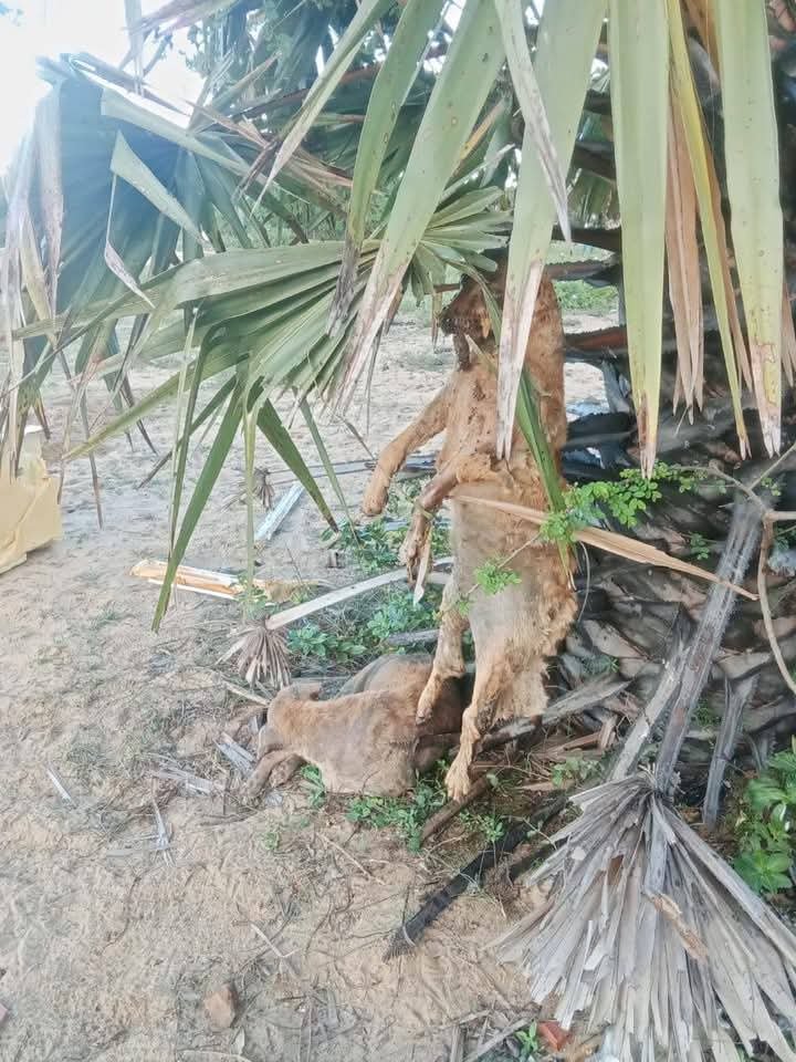 கல்முனை மாநகர சபை எல்லைக்குட்பட்ட பெரிய நீலாவணை விஷ்ணு மகா வித்தியாலய மைதானத்தில் உள்ள பனை மரம் ஒன்றில் நாய் ஒன்று கொல்லப்பட்டு கட்டி தொங்கவிடப்பட்டுள்ள நிலையில் உள்ளதுடன் மற்றுமொரு நாய் இறந்த நிலையில் காணப்படுகின்றது.
