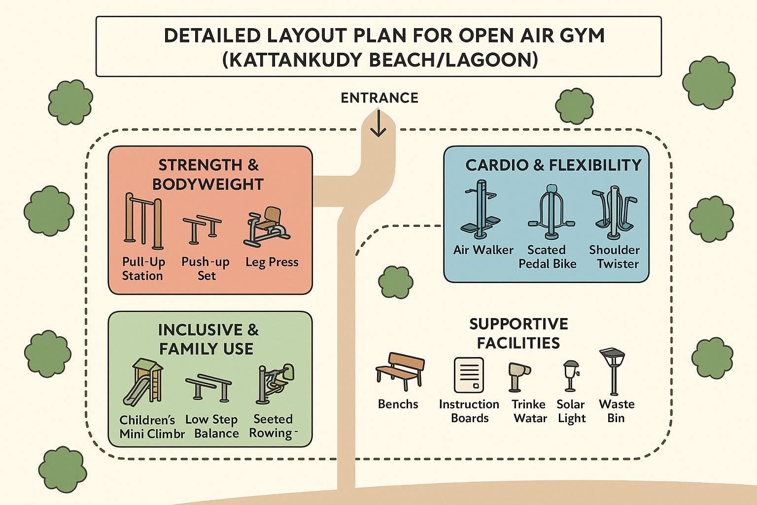 இன்றைய இளைஞர்களில் உடல் இயக்கம் குறைவதால் பல ஆரோக்கிய பிரச்சினைகள் அதிகரித்துள்ளன. உலகளாவிய ஆய்வுகள் காட்டியுள்ளபடி, open-air fitness spaces மக்கள் ஆரோக்கியத்தையும், மனநலத்தையும், சமூக உறவையும் மேம்படுத்துகின்றன.