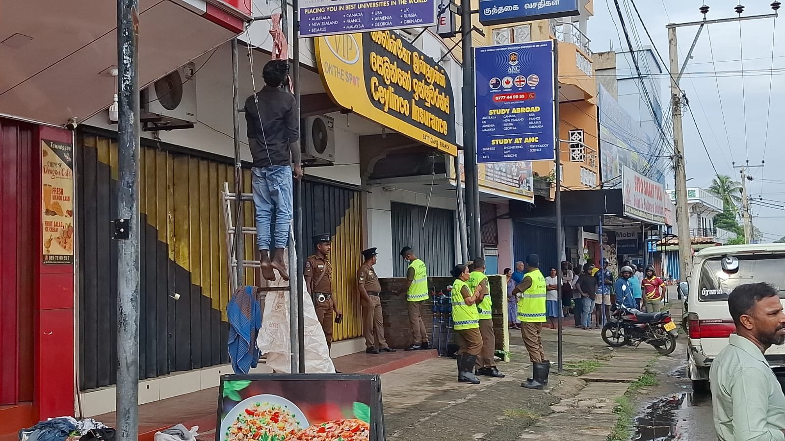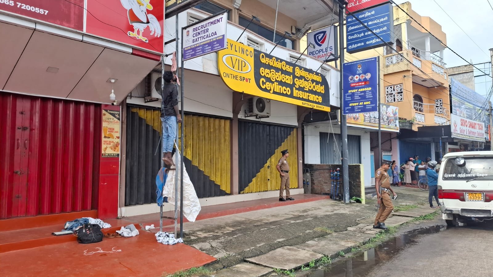 பல வர்த்தக நிலையங்கள் அமைந்துள்ள அப்பிரதேசத்தில் உயரமான இடம் ஒன்றில் தூக்கி தொங்கிய நிலையில் குறித்த சடலம் காணப்படுகிறது
