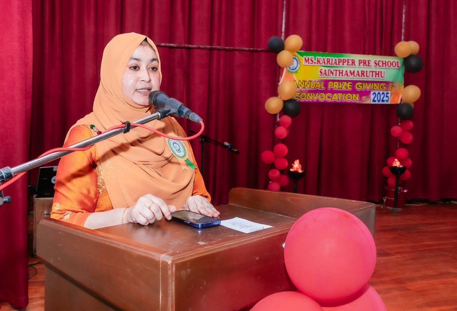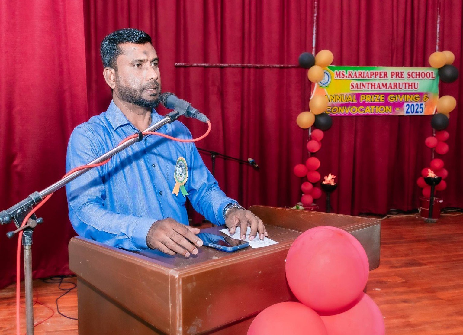 இன்று இவ்வளவு மகிழ்ச்சியும் பெருமையும் நிறைந்த இந்தப் எம்.எஸ்.காரியப்பர் பாலர் பாடசாலை வருடாந்த பட்டமளிப்பு மற்றும் பரிசளிப்பு விழாவில் பிரதம அதிதியாக கலந்து கொள்வதையிட்டு மகிழ்ச்சியடைகிறேன். என்னை பிரதம அதிதியாக இந்நிகழ்வுக்கு அழைத்தமைக்கு பாலர் பாடசாலை நிர்வாகத்திற்கு நன்றிகளையும் தெரிவித்துக் கொள்கின்றேன் என்றார்.