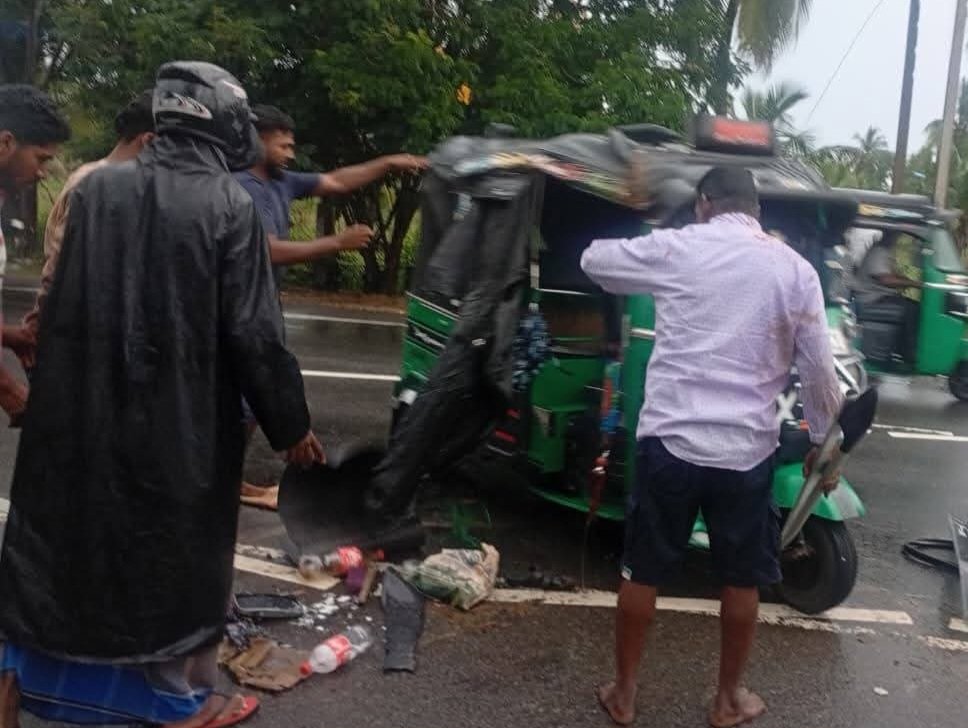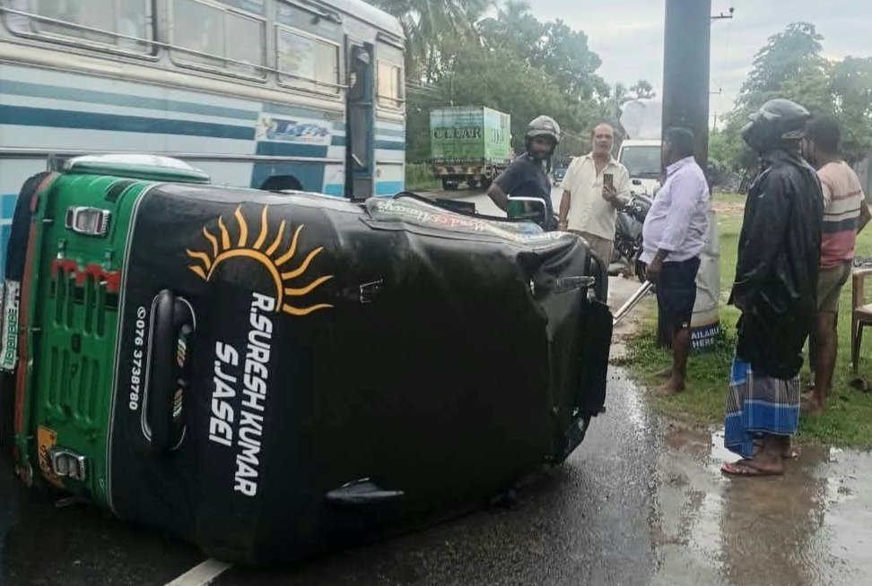 வீதியில் பயணித்துக் கொண்டிருந்த குறித்த முச்சக்கர வண்டி, திடீரென கட்டுப்பாட்டை இழந்ததன் காரணமாக குடைசாய்ந்து விபத்துக்குள்ளானதாக தெரிவிக்கப்படுகிறது. விபத்தின் போது முச்சக்கர வண்டி பலத்த சேதமடைந்துள்ளது.