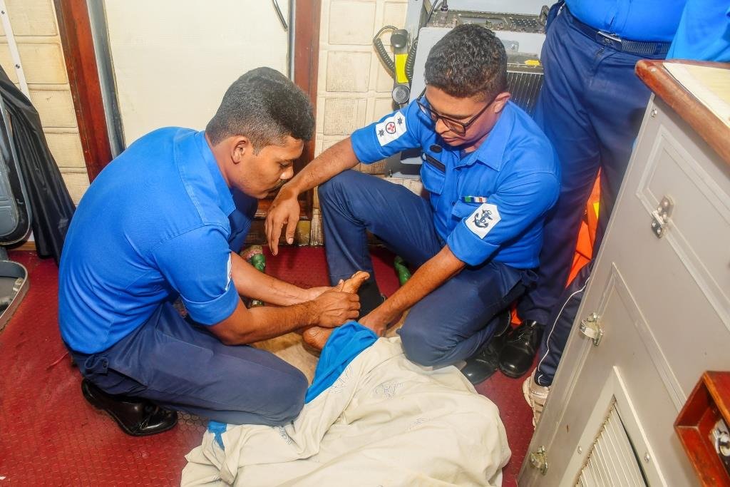 அதன்படி டிசம்பர் 10 ஆம் திகதி இரவு, கடற்படைக் கப்பலில் ஆபத்தான நிலையில் இருந்த மீனவரை சிகிச்சைக்காக கரைக்குக் கொண்டுவந்த பின்னர், கடற்படையினர் மீனவருக்கு அடிப்படை முதலுதவி அளிக்க நடவடிக்கை எடுத்து, அவரை உடனடியாக திருகோணமலை துறைமுகத்திற்குக் கொண்டு வந்த்தன் பின்னர் மேலதிக சிகிச்சைக்காக திருகோணமலை பொது மருத்துவமனைக்கு அனுப்பி வைத்தனர்.