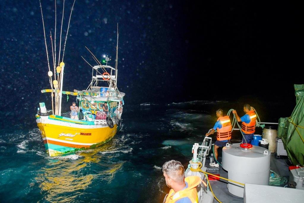 திருகோணமலை, கோட்பே மீன்வளத் துறைமுகத்திலிருந்து டிசம்பர் 02 ஆம் திகதி ஆறு (06) மீனவர்களுடன் புறப்பட்ட பல நாள் மீன்பிடிக் கப்பலான ‘அகீத் 2’ (IMUL-A-0957 TLE), திருகோணமலைக்கு கிழக்கே 16 கடல் மைல் (சுமார் 29 கி.மீ) தொலைவில் கடலில் மீன்பிடி நடவடிக்கைகளில் ஈடுபட்டிருந்தபோது, அதில் இருந்த ஒரு மீனவர் நோய்வாய்ப்பட்டு ஆபத்தான நிலையில் விழுந்தார். மீனவரை சிகிச்சைக்காக கரைக்குக் கொண்டுவர கடற்படைக்கு உதவி வழங்குமாறு மீன்வள மற்றும் நீர்வளத் துறையின் கோரிக்கைக்கு உடனடியாக பதிலளித்த கடற்படை, ஆபத்தான நிலையில் இருந்த மீனவரை சிகிச்சைக்காக கரைக்குக் கொண்டுவர கிழக்கு கடற்படை கட்டளையுடன் இணைக்கப்பட்ட கடற்படைக் கப்பலை கடல் பகுதிக்கு அனுப்பியது.