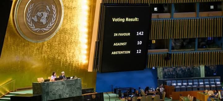பாலஸ்தீனத்தை தனி நாடாக அங்கீகரிக்கும் ஐ.நாவின் தீர்மானம் – ஆதரவாக 142 நாடுகள்; எதிராக 10 நாடுகள் வாக்களிப்பு.!!!