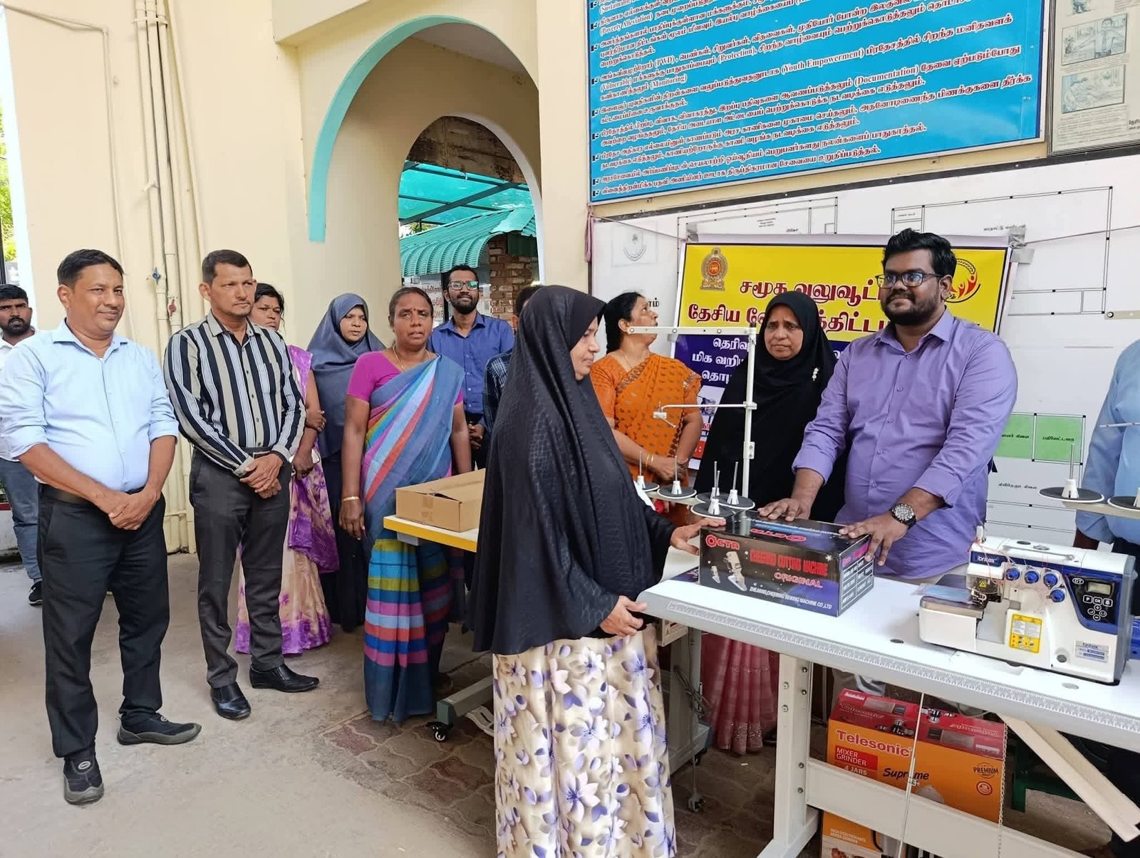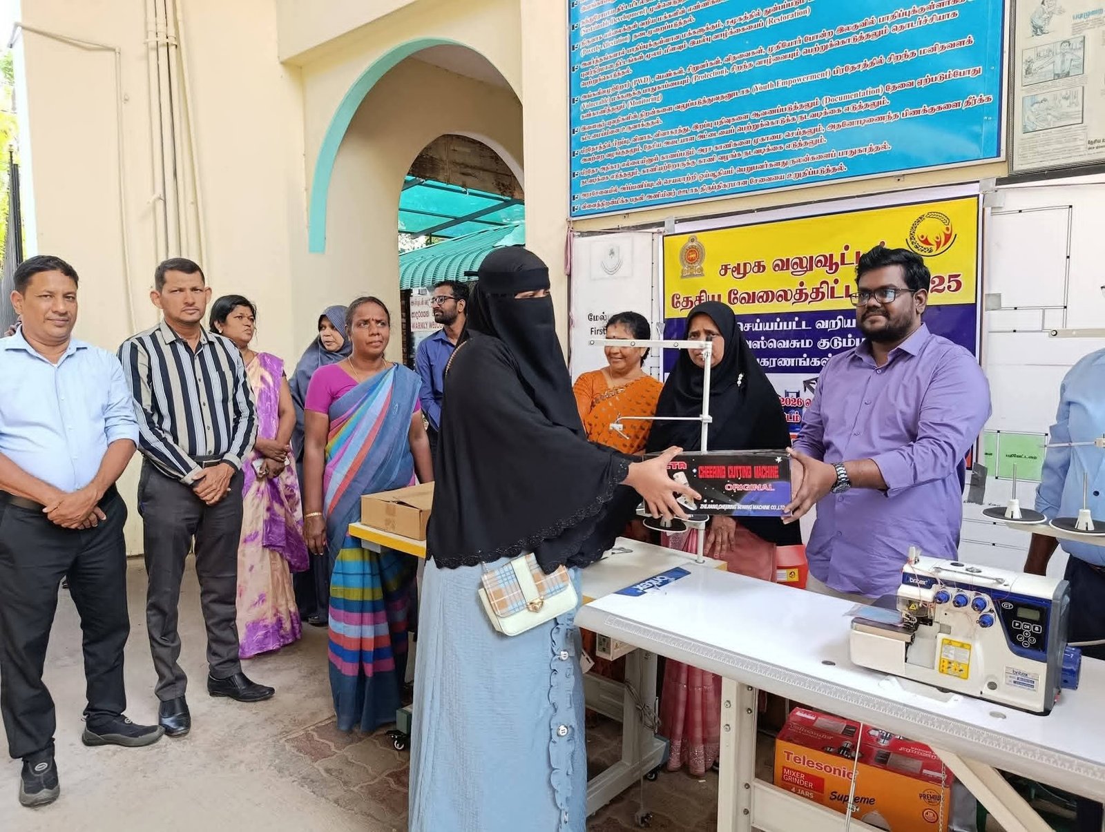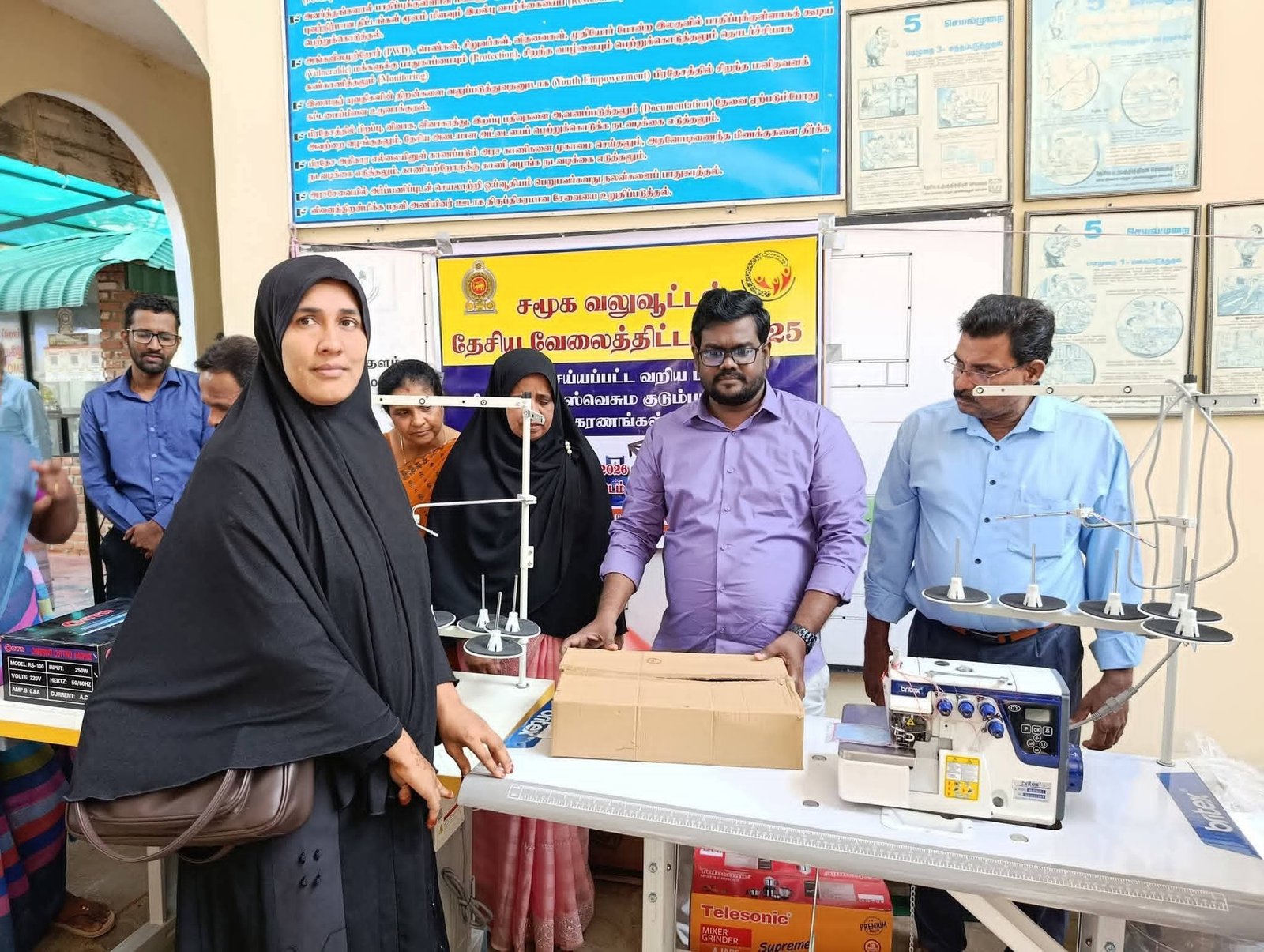 சமுர்த்தி திணைக்களத்தின் சமூக வலுவூட்டல் தேசிய வேலைத்திட்டத்தின் கீழ், வாழ்வாதாரத்தை மேம்படுத்திக் கொள்வதற்காக 24 குடும்பங்களுக்கு ஆடை உற்பத்தி மற்றும் உணவு உற்பத்தி தயாரிப்புக்கான உபகரணங்கள் வழங்கப்பட்டன.