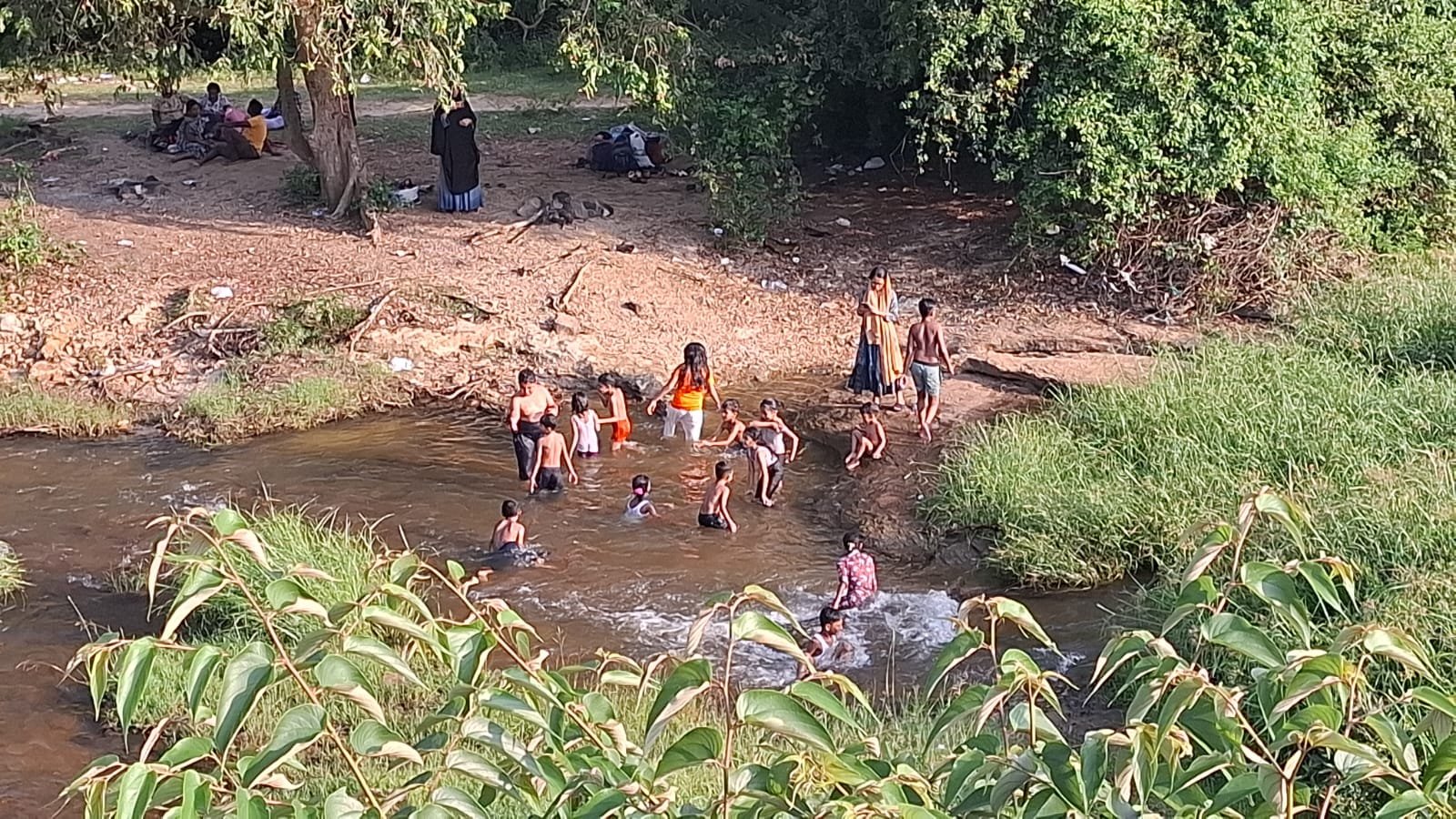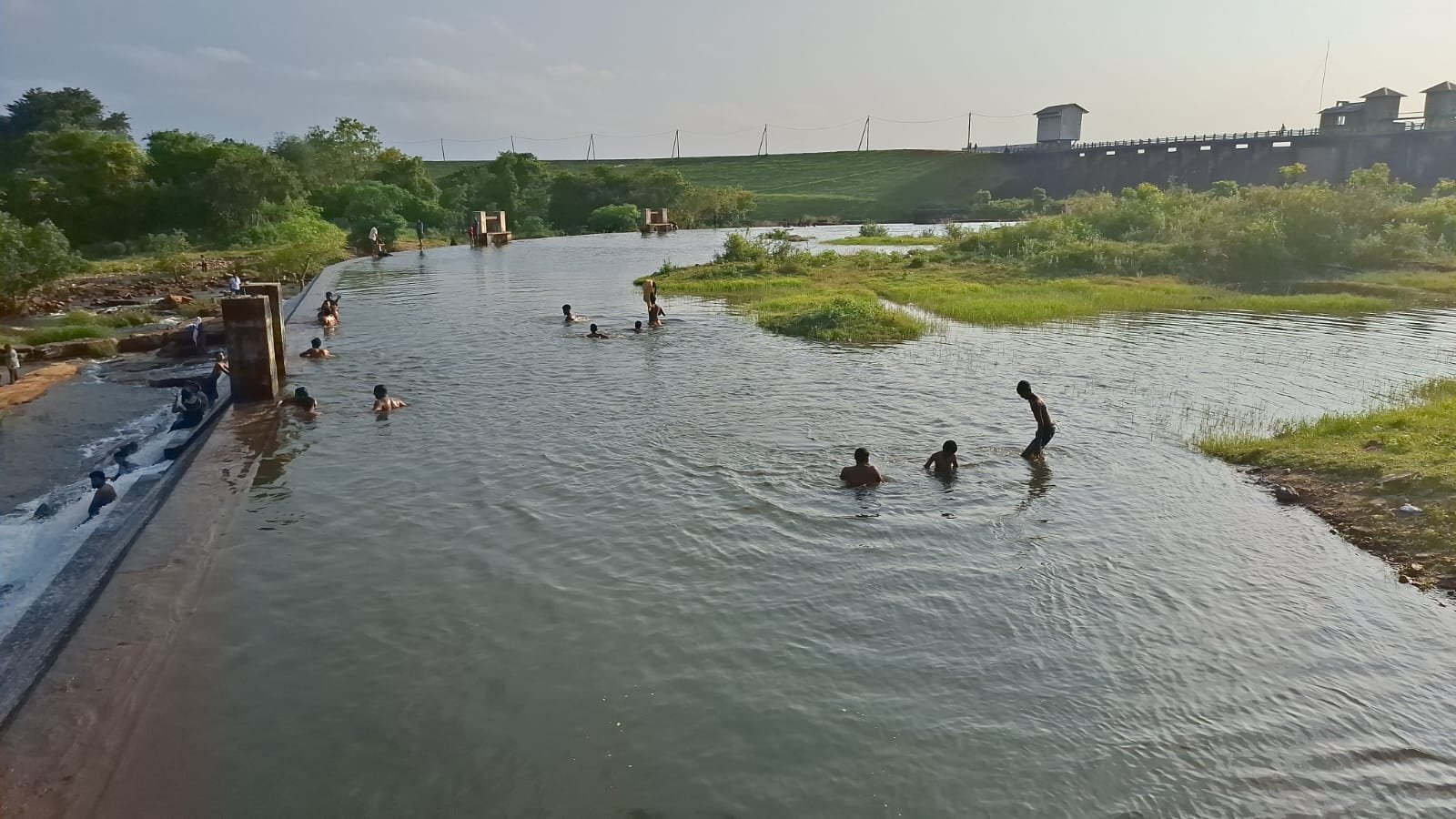 அருவி போல் பாய்ந்து வரும் குளத்தின் நீரில் சிறுவர்கள், பெண்கள் உட்பட அதிகளவிலான இளைஞர்களும் முழு நாளும் நீராடி மகிழும் காட்சிகள் பலரை கவரும் காட்சிகளாக மாறிவருகிறது.